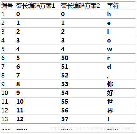 | 编码方案1 | 字符 |