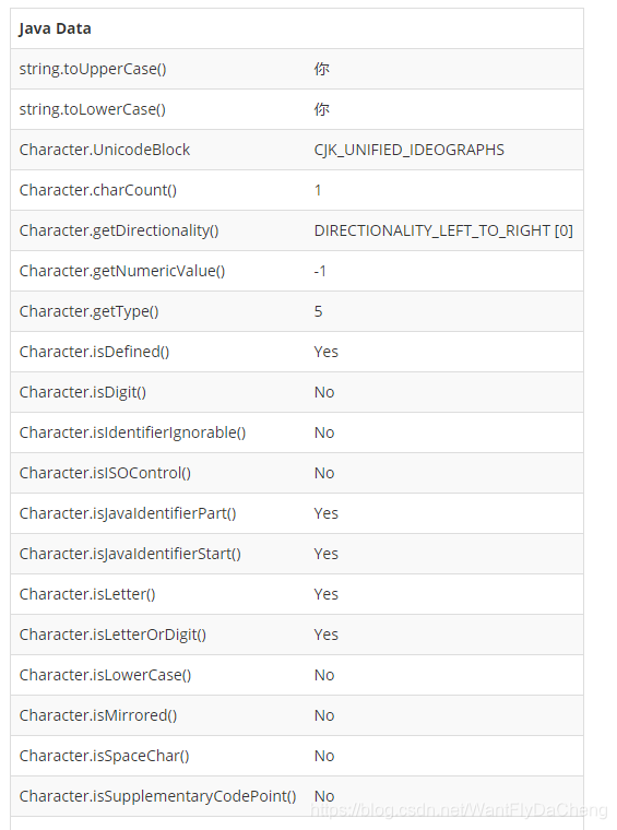 字符A的ASCII码是众所周知是65吧,将65转换成16进制就是41(16×4 (16^0)×1 = 65),按照规则前面补0,那么字符A的码点表示就是U 0041,依次类推B的码点表示就是U 0042...等等,汉字"你"的字符表示是“U 4F60”...