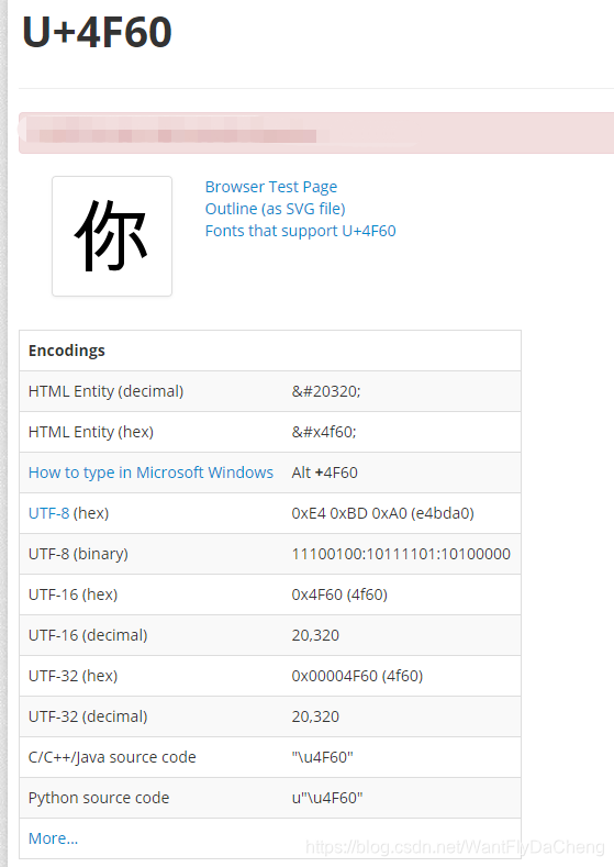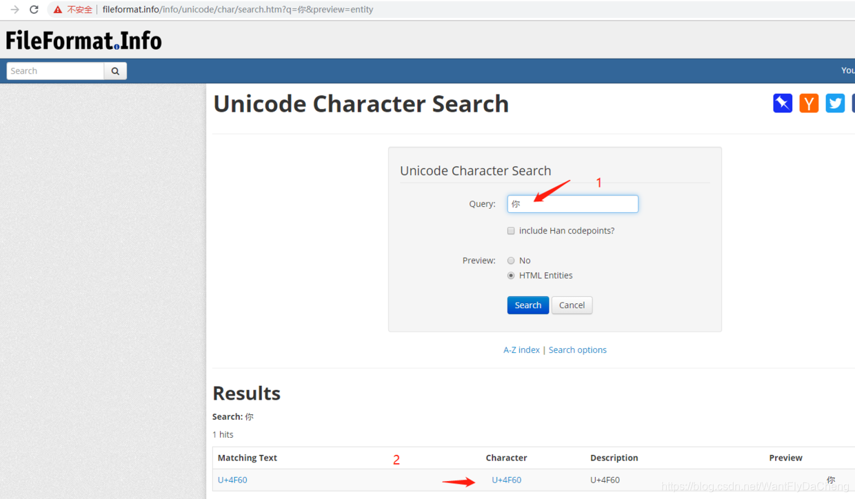 对于网址:http://www.fileformat.info/info/unicode/char/4f60/index.htm