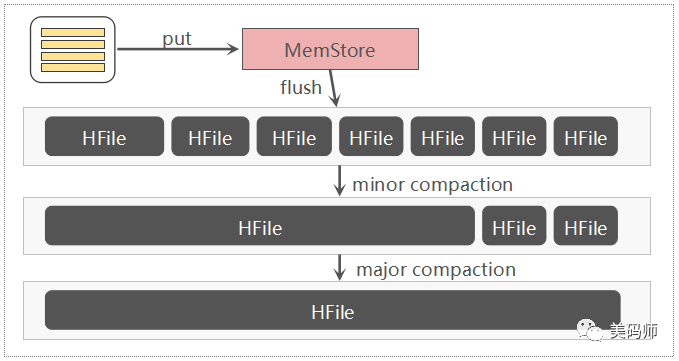 Minor Compaction,列族中小范围的HFile文件合并,一般较快,占用IO低
