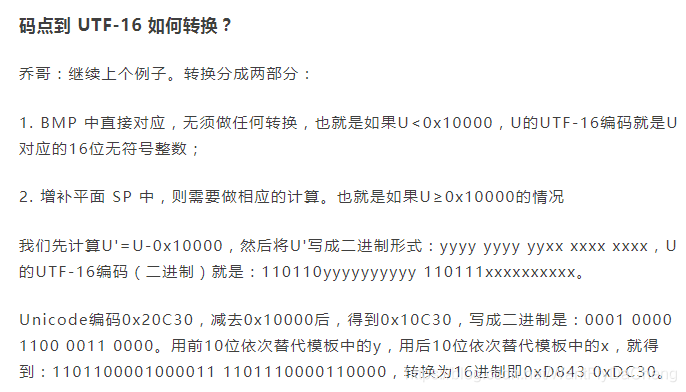 你还记得你前几天被面试官说菜的时候学到的Unicode知识吗,在面试官让我讲讲Unicode,我讲了3秒说没了,面试官说你可真菜这里面提到,UTF-16编码一个字符对于U 0000-U FFFF范围内的字符采用2字节进行编码,而对于字符的码点大于U FFFF的字符采用四字节进行编码,前者是两字节也就是一个代码单元,后者一个字符是四字节也就是两个代码单元!