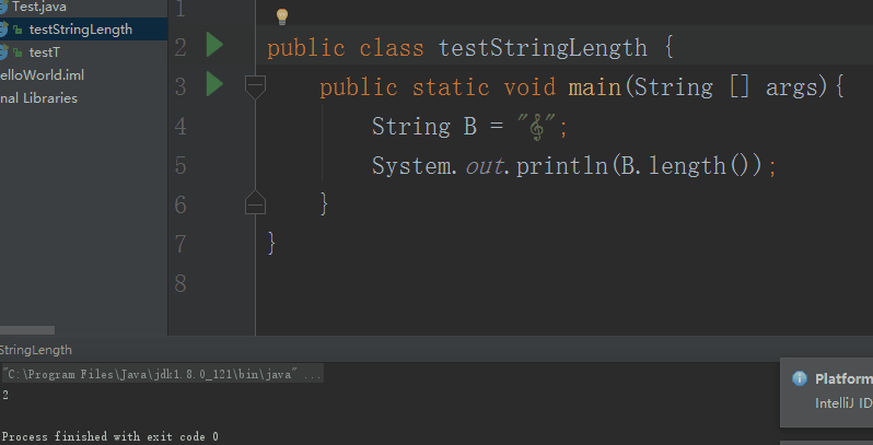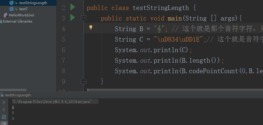 可以看到通过codePointCount()函数得知这个音乐字符是一个字符!