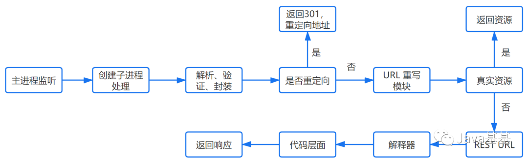 它会监听得到的请求,然后开启一个子进程去处理这个请求。