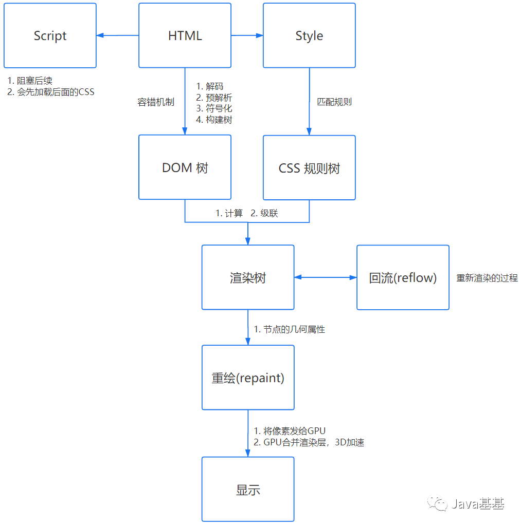 不同的浏览器内核,渲染过程也不完全相同,但大致流程都差不多。