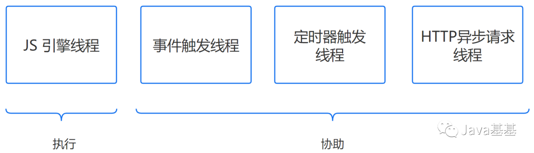 其中三个只是协助,只有 JS 引擎线程是真正执行的