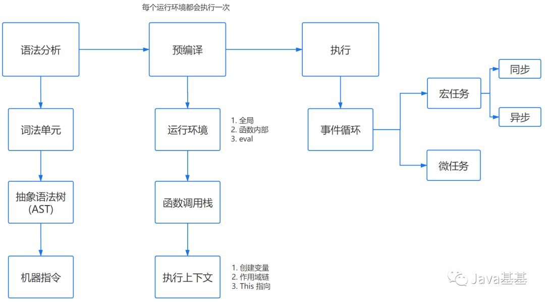 每进入一个不同的运行环境都会创建一个对应的执行上下文,根据不同的上下文环境,形成一个函数调用栈,栈底永远是全局执行上下文,栈顶则永远是当前执行上下文。