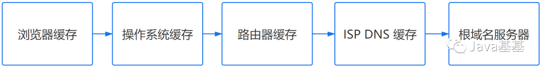 浏览器会先检查是否在缓存中,没有则调用系统库函数进行查询。