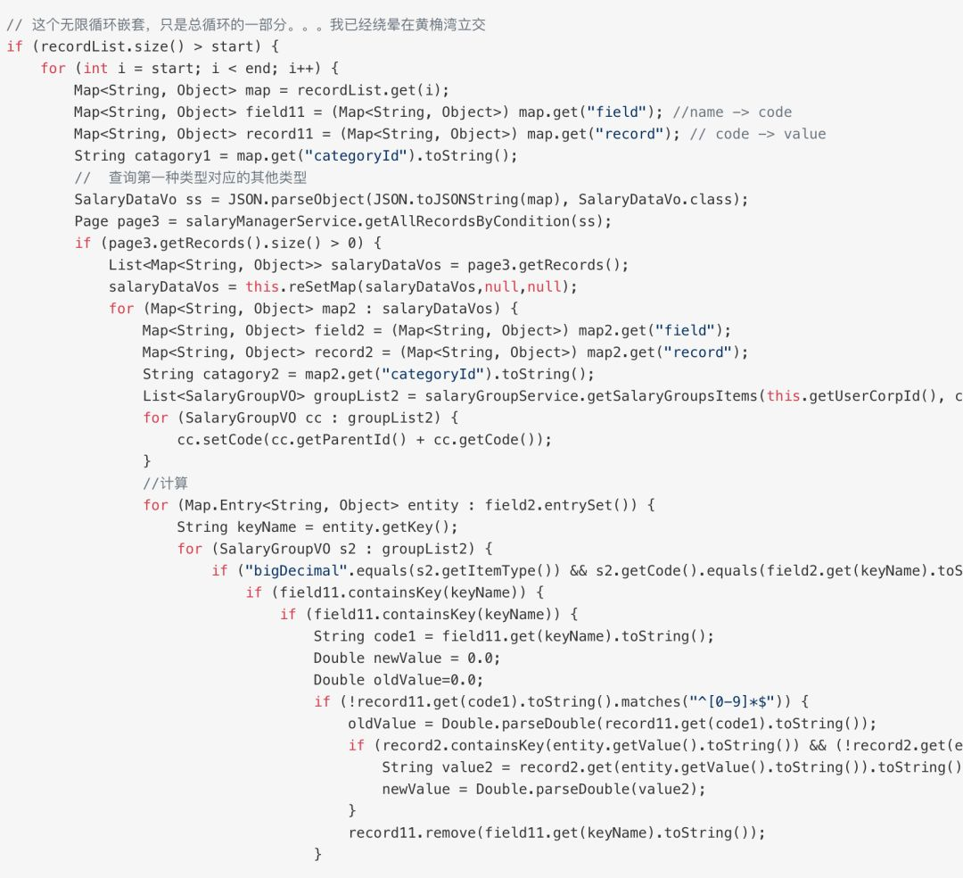 你懒,我也懒,前期迭代懒得优化,来一个需求,加一个if,久而久之,就串成了一座金字塔。
