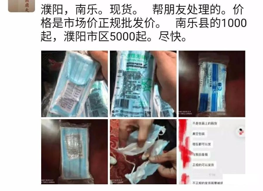 朋友圈口罩的话术和文案基本是一个套路——我找到厂家/大供应商渠道了!10000个(甚至更大的数字)起订,现在开始拼单!价格大概在4元—15元这个区间。还有一些各种国家各种品牌的,基本上也都是这个模式吧,其中最大的特点就是要求起订量巨大,所以大家一起拼单。