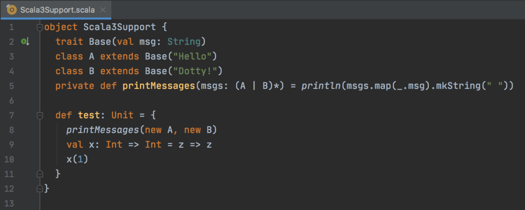 IntelliJ IDEA 2020.1 提供了对 Scala 3 的初步支持,包括新的语法、错误高亮显示、导航、类型信息以及其他许多其他的基本 IDE 功能。