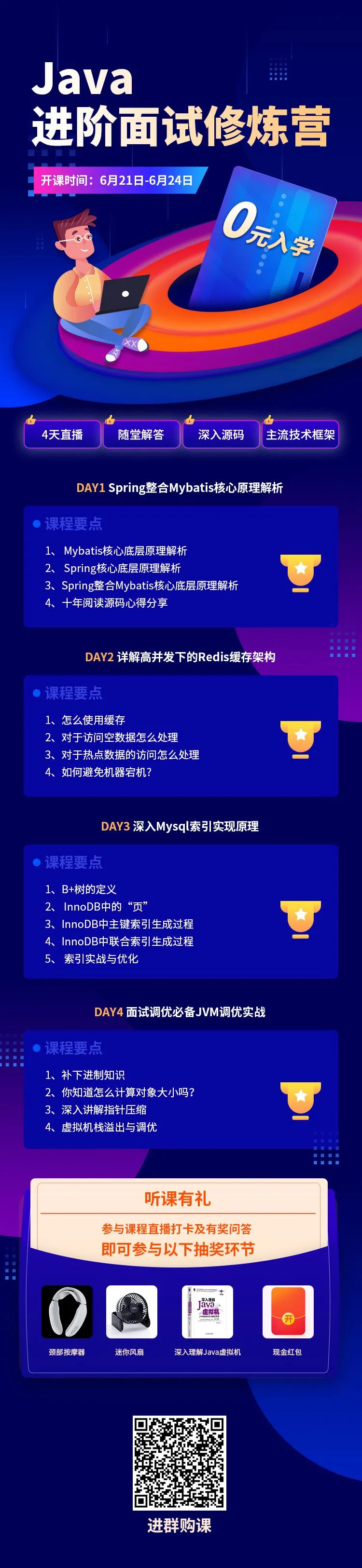 关于这些技术点要深入学习的话,需要花费一定的时间。给大家推荐一个专门针对这些技术点进行剖析的训练营,全程为期4天,6月21日-24日,课程0元入学,时长8小时,采用直播授课形式,具体课程安排及福利环节详见下图海报。