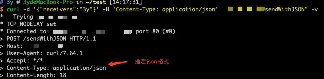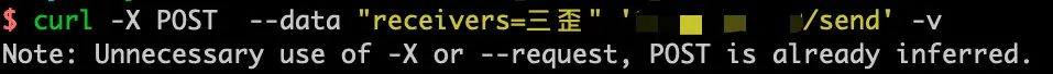当我们执行curl -X POST --data "receivers=三歪" '127.0.0.1/send' -v时,看到返回的信息会告诉我们(其实我们不需要使用-X POST在标明这是一个POST请求,curl已经可以帮我们判断了)