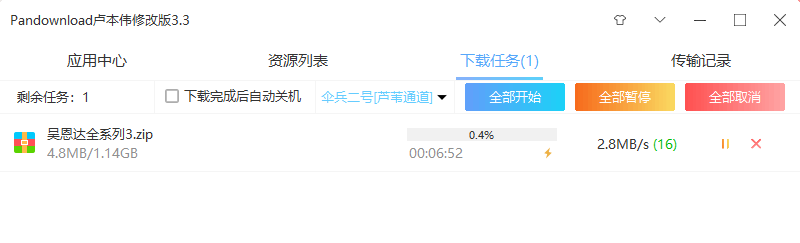 账号中的内容就会同步到PanDownload卢本伟中,选择其中一个测试一下下载速度: