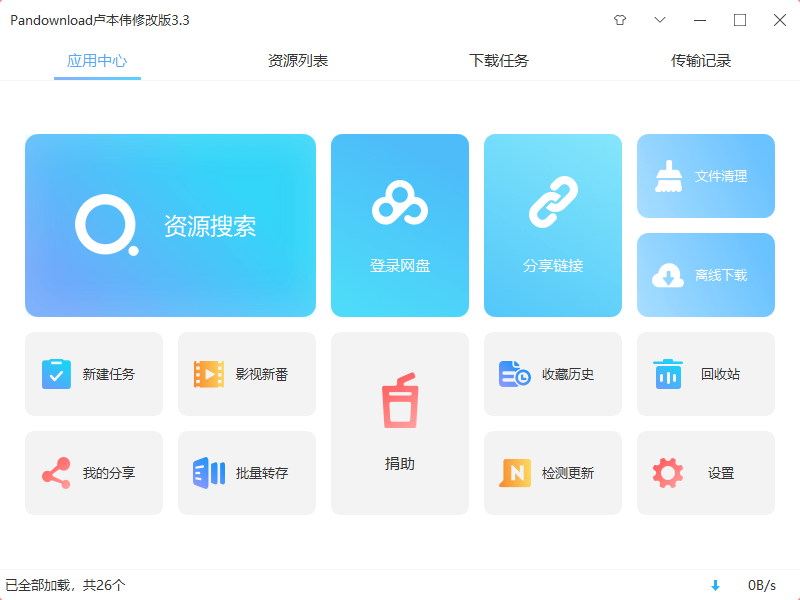 这款软件的名字有点意思——PanDownload卢本伟,全体起立!可能卢姥爷已经开始进军互联网行业了?它的页面和之前版本很相似: