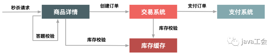 秒杀一般是访问请求数量远远大于库存数量,只有少部分用户能够秒杀成功。