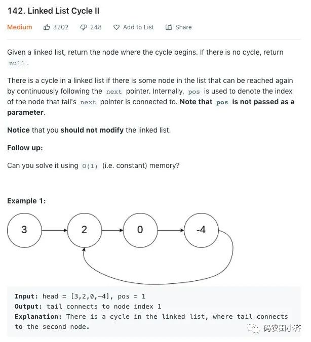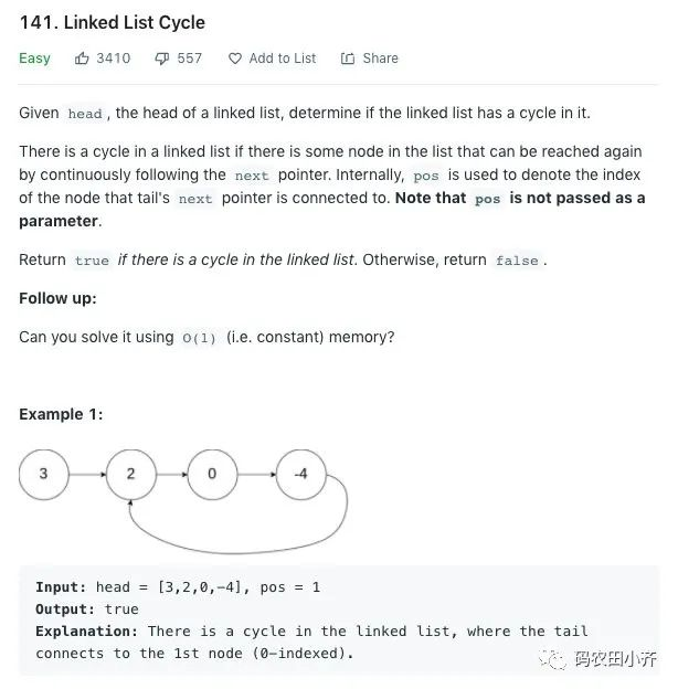 所以当两个指针,一个从头开始走,一个从 M 点开始走时,相遇那点就是环的起点,证毕。