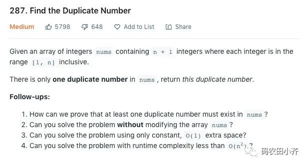 这题还有个应用,就是找一个特定数组里重复的数字,这里就不展开了,大家感兴趣的去做一下吧~