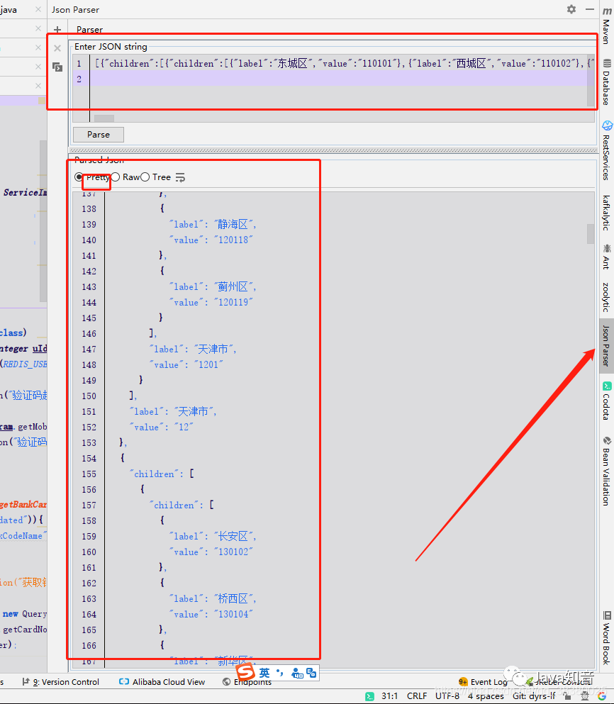java 类上添加 Convert to JSON 功能,格式化 json 数据 ( Windows: Ctrl + Enter; Mac: Command + Enter )。