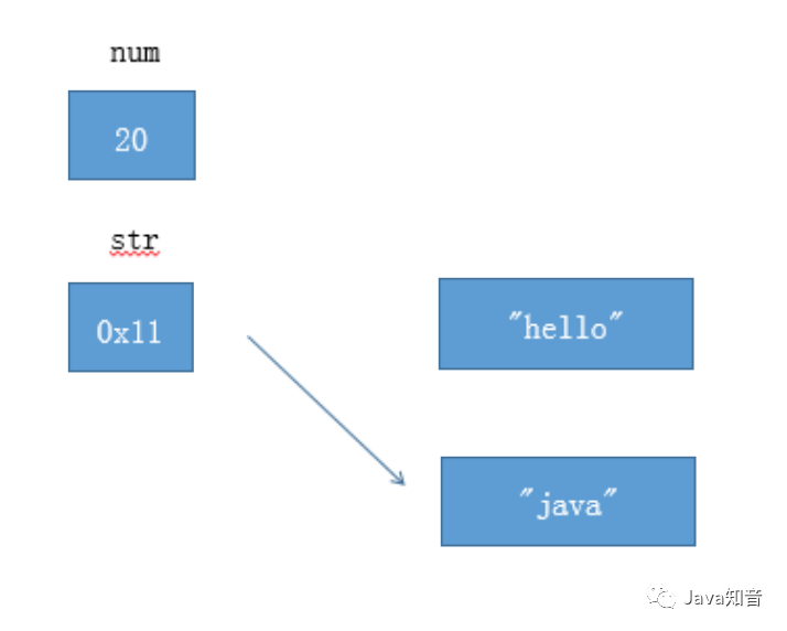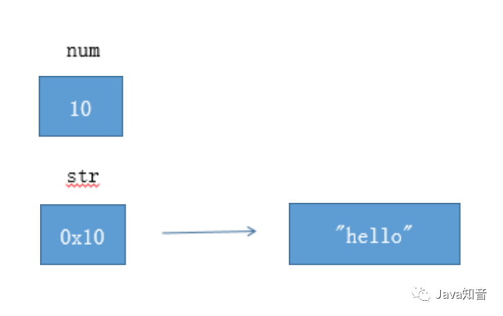如图所示,num是基本类型,值就直接保存在变量中。而str是引用类型,变量中保存的只是实际对象的地址。一般称这种变量为"引用",引用指向实际对象,实际对象中保存着内容。