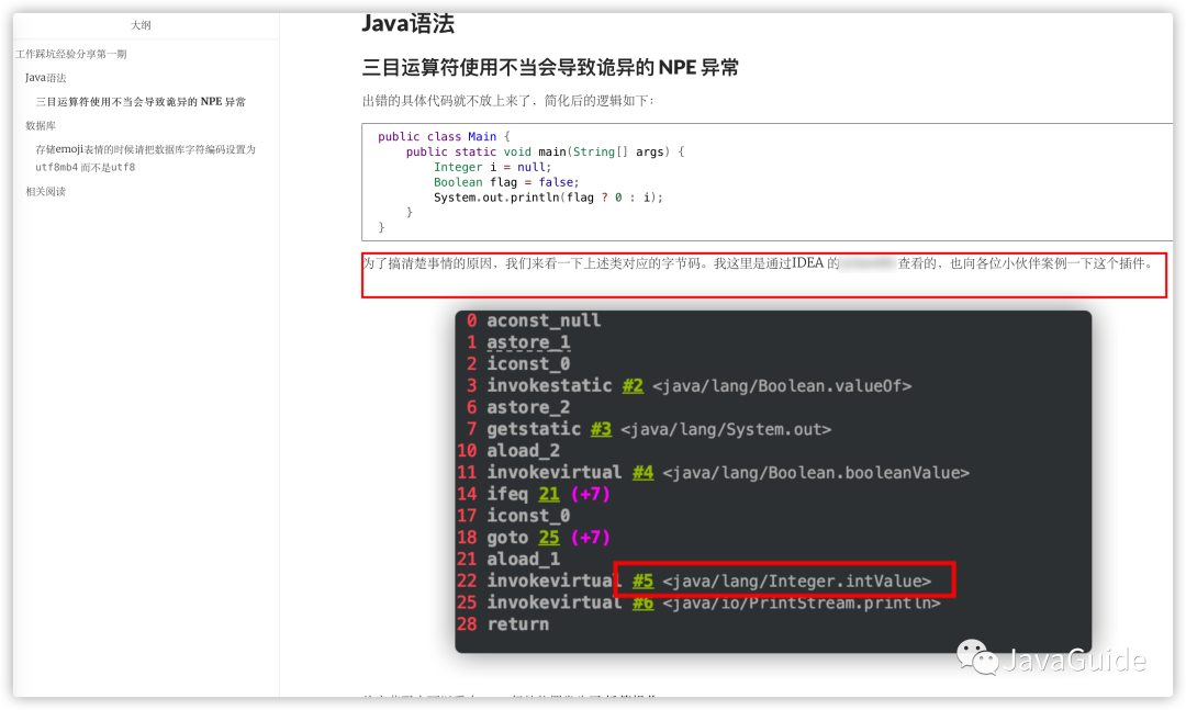 详细解释下就是:flag ? 0 : i 这行代码中,0 是基本数据类型 int,返回数据的时候 i 会被强制拆箱成 int 类型,由于 i 的值是 null,因此就抛出了 NPE 异常。