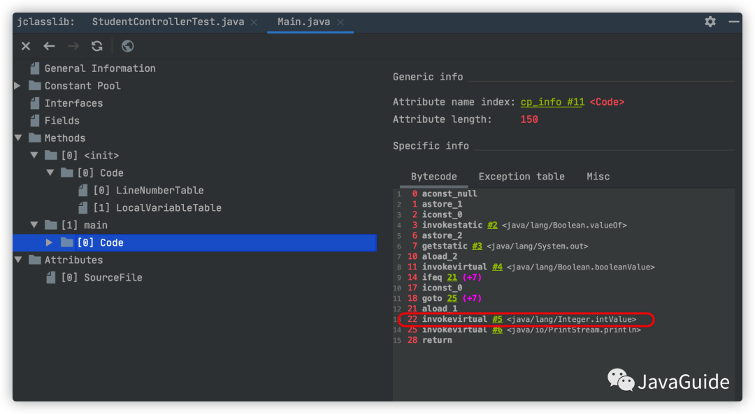 稍等几秒钟之后,你就可以直观到看到对应的类的字节码内容了。