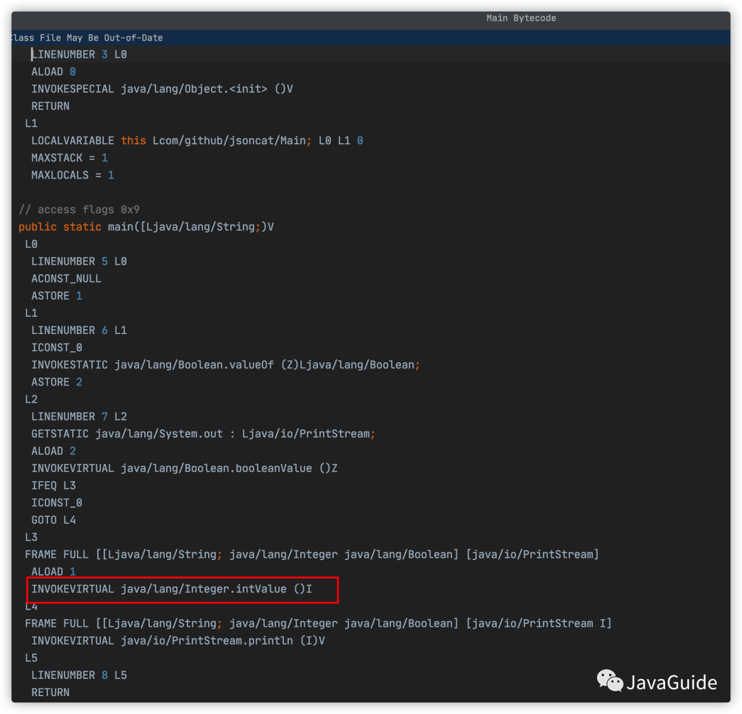 从字节码中可以看出,我圈出来的位置发生了 拆箱操作 。