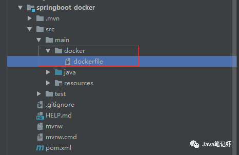 3.新建docker文件在main目录下新建docker目录,然后在docker目录下创建dockerfile文件,不需要后缀名。