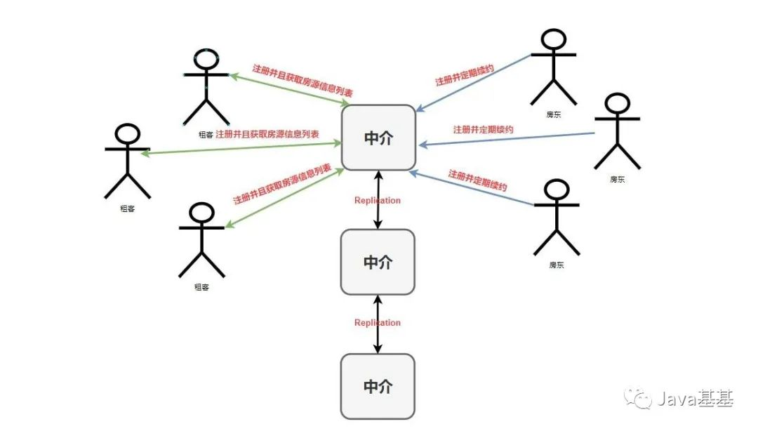 但是如果只是租客和房东之间进行寻找的话,他们的效率是很低的,房东找不到租客赚不到钱,租客找不到房东住不了房。所以,后来房东肯定就想到了广播自己的房源信息(比如在街边贴贴小广告),这样对于房东来说已经完成他的任务(将房源公布出去),但是有两个问题就出现了。第一、其他不是租客的都能收到这种租房消息,这在现实世界没什么,但是在计算机的世界中就会出现资源消耗 的问题了。第二、租客这样还是很难找到你,试想一下我需要租房,我还需要东一个西一个地去找街边小广告,麻不麻烦?