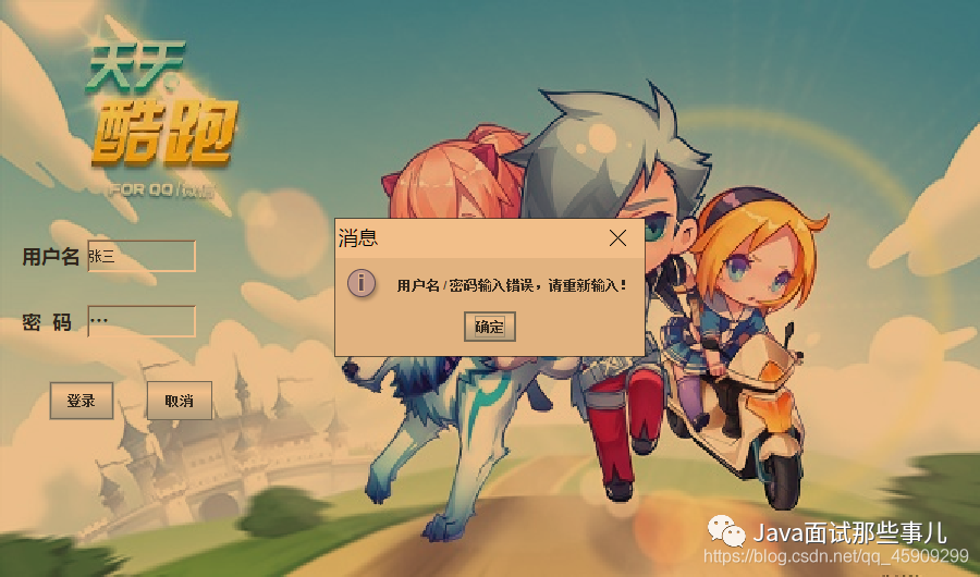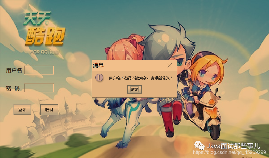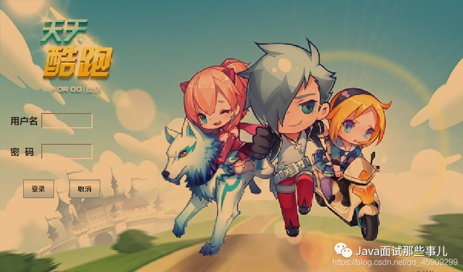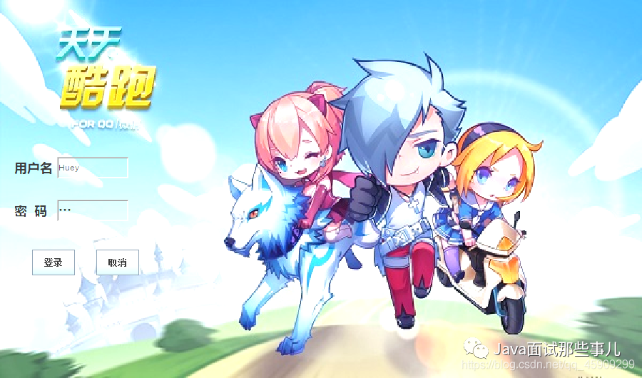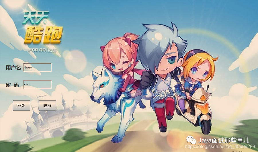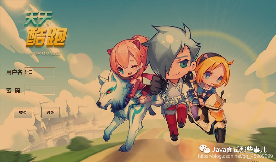 用户名(输入框,明文) 密码(输入框,密文) 登录、取消按钮