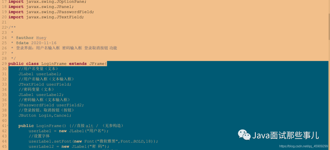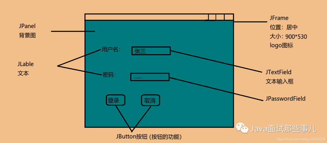 this.add(userLabel);//将用户名这三个字添加到登录界面上,以下同理