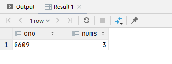 在使用 HAVING 子句时,把 GROUP BY 聚合后的结果作为 HAVING 子句的起点,会更容易理解;示例中通过 cno 进行聚合后的结果如下: