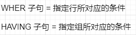 WHERE 子句是指定行所对应的条件,而 HAVING 子句是指定组所对应的条件