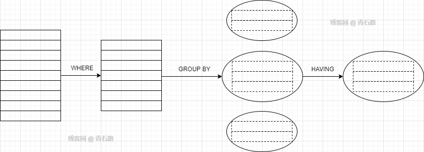 我们可以简单总结下:WHERE 先过滤出行,然后 GROUP BY 对行进行分组,HAVING 再对组进行过滤,筛选出我们需要的组