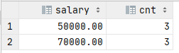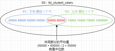 表 tbl_student_salary 有 10 条记录,那么 张三三, 60000 和 李四, 50000 的平均值 55000 就是中位数