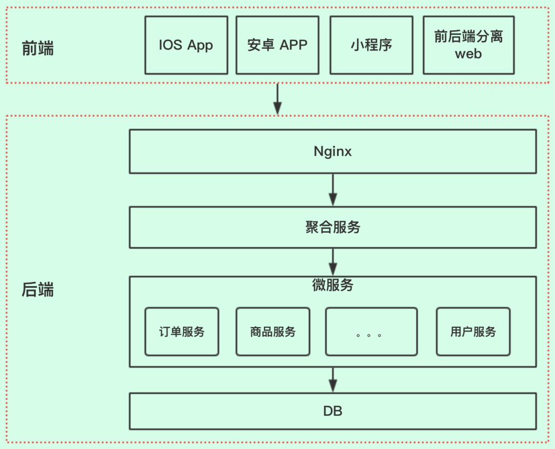 需要说明的是,有些小伙伴会回复说,这个架构太简单了吧,太low了,什么网关啊,缓存啊,消息中间件啊,都没有。因为这篇主要介绍的是API接口,所以我们聚焦点,其他的模块小伙伴们自行去补充。