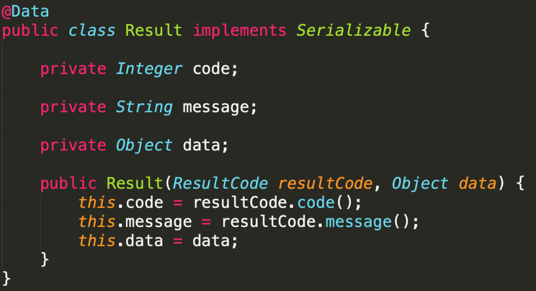我们看到在获得order对象之后,我们是用的Result构造方法进行包装赋值,然后进行返回。小伙伴们有没有发现,构造方法这样的包装是不是很麻烦,我们可以优化一下。