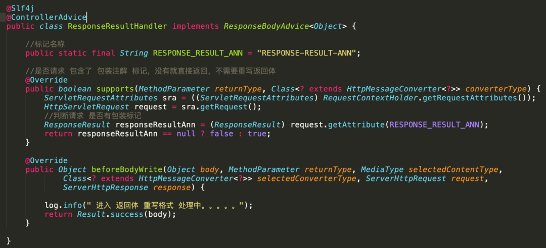 此代码核心思想,就是获取此请求,是否需要返回值包装,设置一个属性标记。