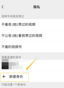 点击视频号,选择右上角的小人,在隐私里我们可以创建一个新的身份。