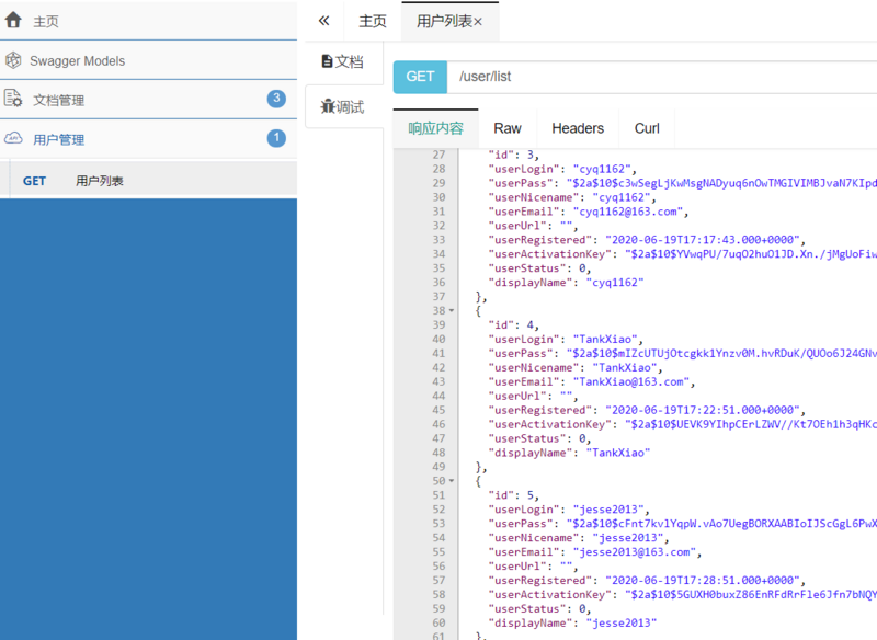 测试接口,效果图如下:
