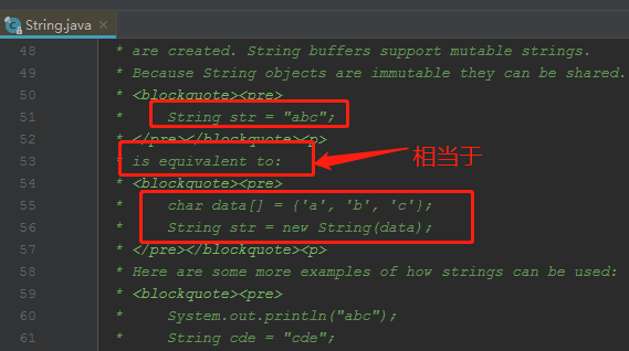 简单的来说,String 类中使用 final 关键字字符数组保存字符串。代码如下: