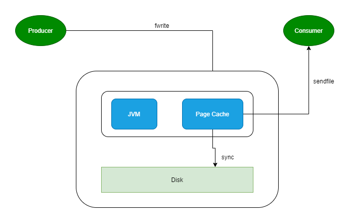 因此如果 Kafka producer 的生产速率与 consumer 的消费速率相差不大,那么就能几乎只靠对 broker page cache 的读写完成整个生产 - 消费过程,磁盘访问非常少。