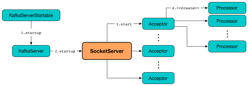 其中包含了一个Acceptor线程,用于处理新的连接,Acceptor 有 N 个 Processor 线程 select 和 read socket 请求,N 个 Handler 线程处理请求并相应,即处理业务逻辑。