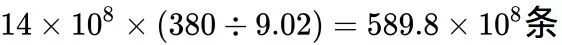 这意味着平均每人每天发送信息 42 条,如果全国人民(对了,现在全国人口已经接近 14 亿)在同一个群里说话,这个群每天出现的信息就高达: