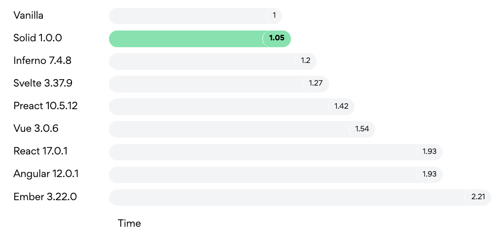 但是,这些并不能帮助 Solid 框架脱颖而出,真正牛逼的一点是它 非常快 。