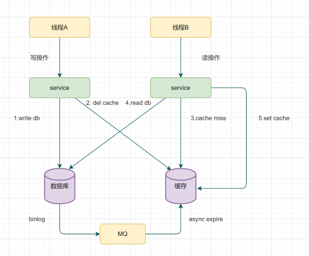 ★这个休眠时间 = 读业务逻辑数据的耗时 + 几百毫秒。为了确保读请求结束,写请求可以删除读请求可能带来的缓存脏数据。