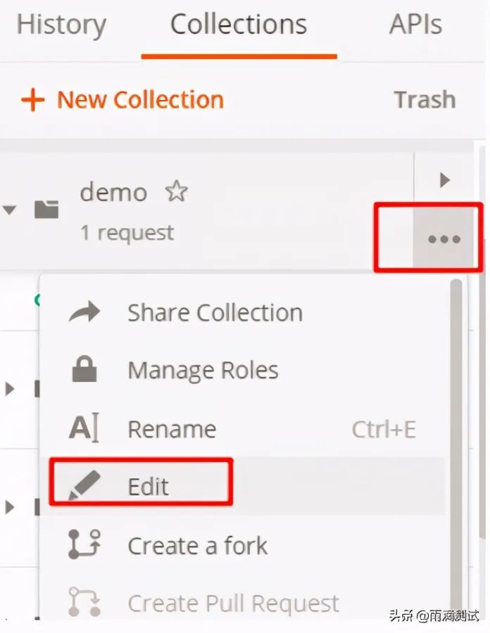 选择一个集合,打开查看更多动作(...)菜单,然后点击编辑 。选择“变量”选项卡以编辑或添加到集合变量。