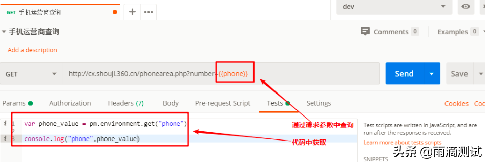 如果在请求参数中获取变量,无论是获取全局变量,还是环境变量,还是集合变量,获取的方式都是一样的编写规则:{{变量名}} 。