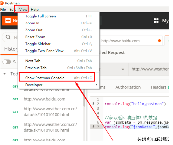 可以看出,一个请求在发送之前,会先去执行Pre Request Script(前置脚本)中的代码 。那么这个功能在实际工作中有什么作用呢 ?
