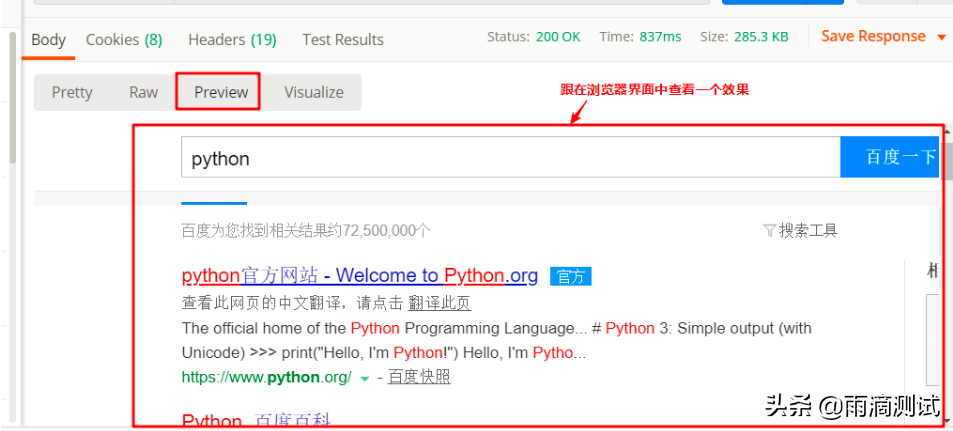 如果你是第一次使用postman发送请求,下面这个例子可以作为一个最基本的入门,可以帮我们建立一个初始印象 。