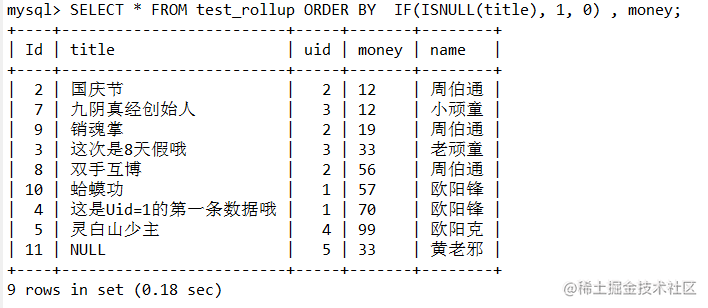 SELECT * FROM test_rollup ORDER BY IF(ISNULL(title), 0, 1), money;